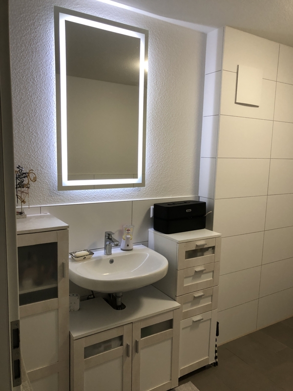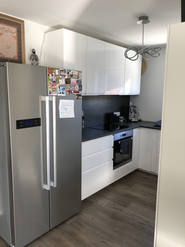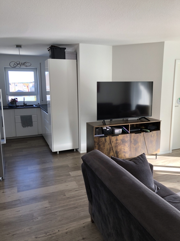 Die Wohnung ist mit einem durchgehenden Vinyl Boden, mit heller Holzstruktur ausgelegt.Im Bad finden Sie helle Boden und Wandfliesen.