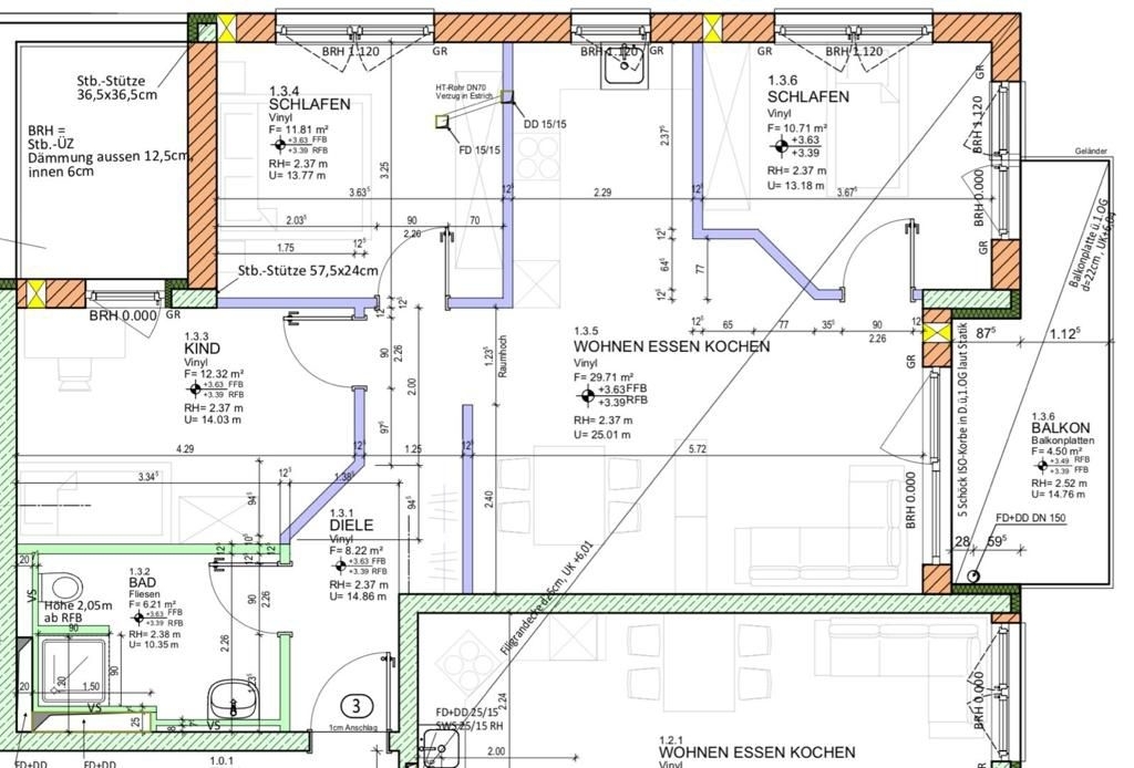 Es ist wirklich ein Meisterwerk der Architektur. Durch den praktisch geschnittenen Grundriss, erreichen Sie bequem vom Flur oder Wohn- Esszimmer, die anderen Räume. Von dem Wohn- Esszimmer aus gelangen Sie auf den großzügigen Balkon mit Blick ins Grüne, hier haben Sie die gewünschte Ruhe. Der Balkon ist nach Osten ausgerichtet, so dass Sie die angenehme Morgen- und Mittagsonne geniesen können. Von einem der Schlafzimmer aus, gelangt man zusätzlich auf den Balkon.